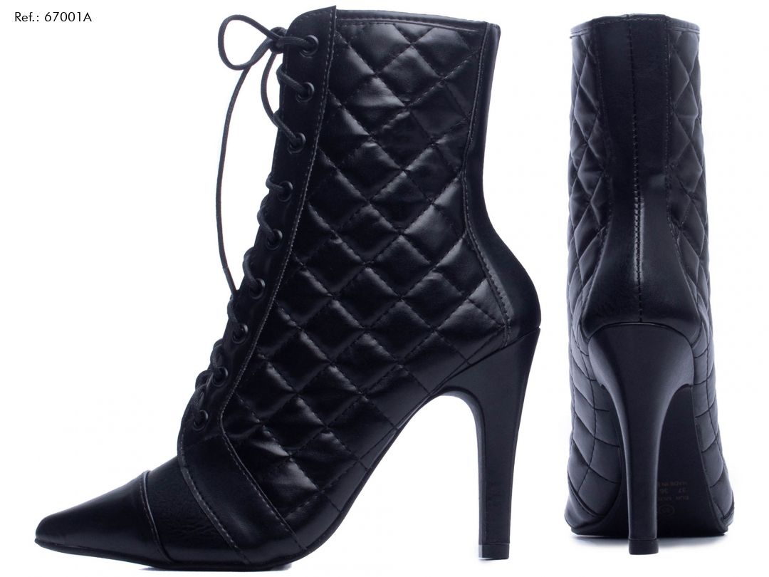Botas femininas elegantes com cano alto, bico fino e salto de 10 cm. Material em napa preto, decorado com detalhes luxuosos em costuras matelassê e cordão com passantes, proporcionando estilo e conforto. Forro em cacharrel espumado para maior suavidade ao uso e solado de TR para segurança ao caminhar. Ideal para diversas ocasiões. Dimensões da caixa: 31,5 x 30 x 9,5 cm, peso aproximado: 1000 gramas.